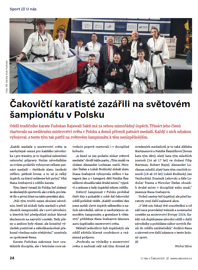 V Čakovických listech byl zveřejněn článek o úspěchu našich závodníků na Mistrovství světa v Polsku 2025