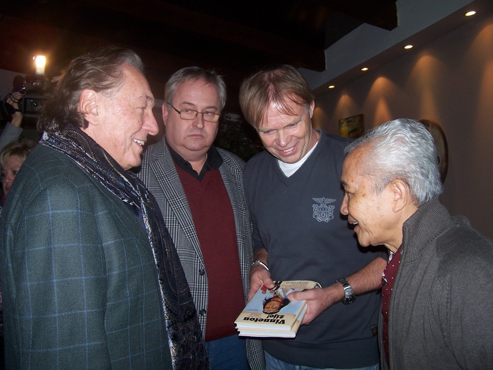 Účastníci setkání: Karel Gott, JUDr.Jan Adam, František Třeštík, Rachmy Soebajo