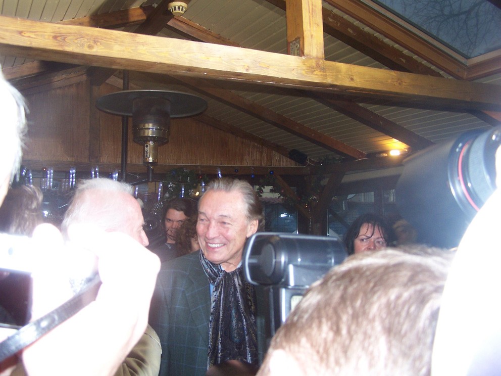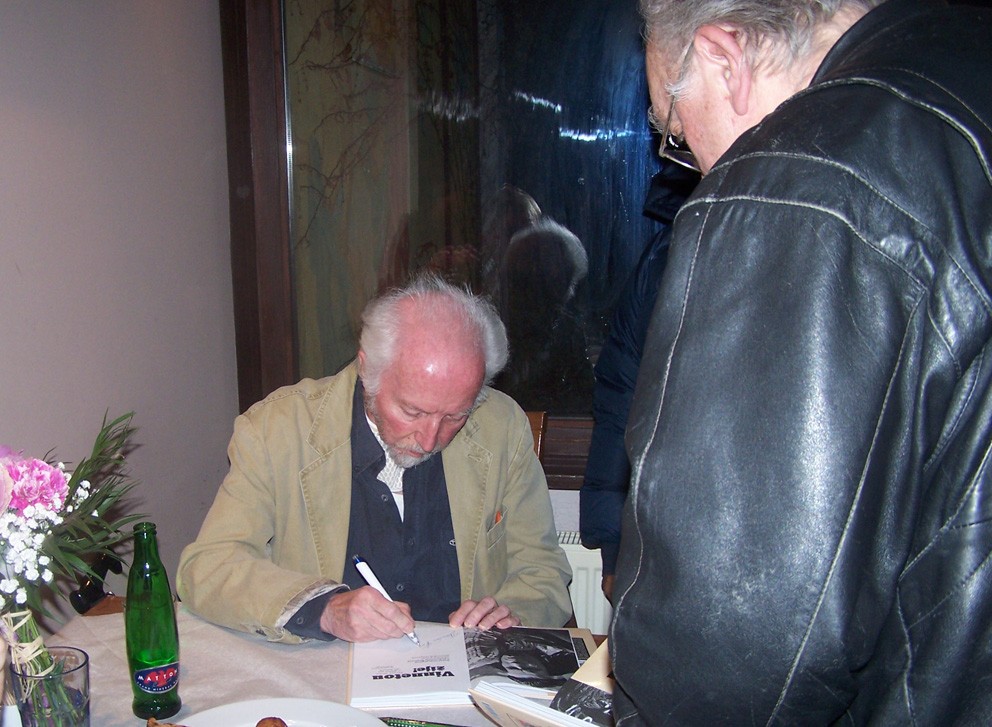 | Karel Gott a St.Fišer v záři světel fotoaparátů | Karel Gott a Jana Drbohlavová | Stanislav Fišer při podpisu knihy |
