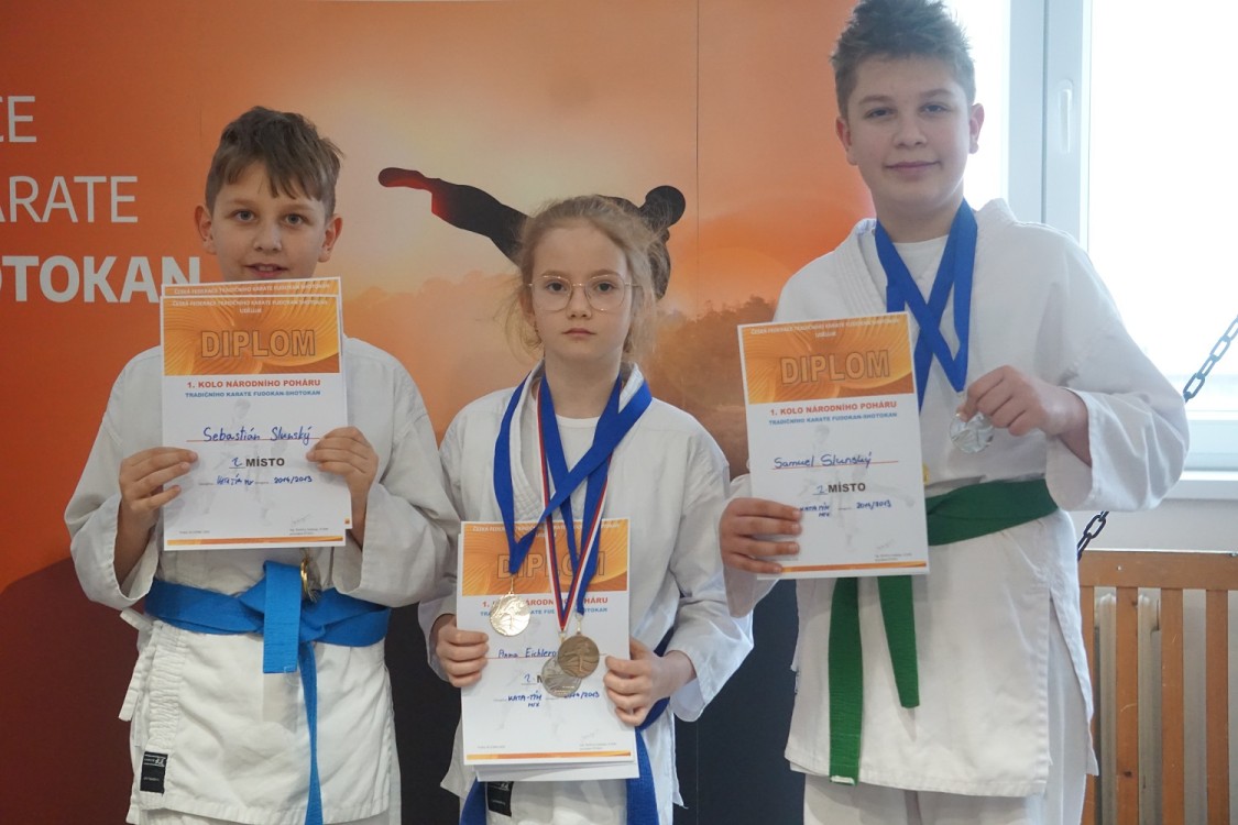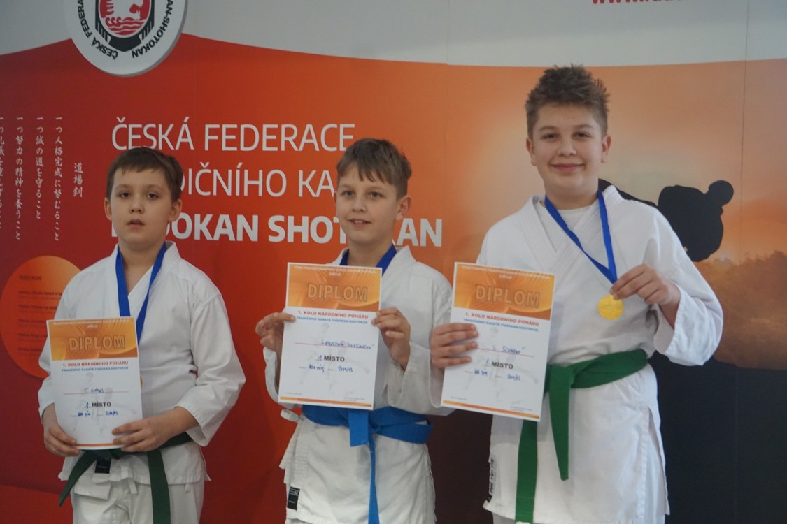 | POHÁR NADĚJÍ 2018/2017 mladší žáci KATA 1 místo Daniel Kohout 2016/2015 mladší žákyně KATA 2 místo Anna Eichlerová 2016/2015 mladší žáci KATA 1 místo Sebastián Slunský 2014/2013 starší žákyně KATA 2 místo Natálie Řezníčková 2014/2013 starší žáci KATA 1 místo Samuel Slunský NÁRODNÍ POHÁR 2016/2015 mladší žákyně KATA 3 místo Anna Eichlerová 2016/2015 mladší žáci KATA 2 místo Sebastián Slunský 2014/2013 starší žákyně KATA 1 místo Alžběta Hartmanová 2014/2013 starší žáci KATA 3 místo Samuel Slunský 2014/2013 KATA TÝM MIX 2 místo Anna Eichlerová 2 místo Samuel Slunský 2 místo Sebastián Slunský 2014/2013 KATA TÝM 1 místo Tomáš Ganaj 1 místo Samuel Slunský 1 místo Sebastián Slunský 2012/2011 kadetky KATA 2 místo Jana Zubinová 2012/2011 kadetky KIHON 3 místo Jana Zubinová 2012/2011 KATA TÝM MIX 2 místo Filip Hartman 2 místo Jana Zubinová 2 místo Alžběta Hartmanová |