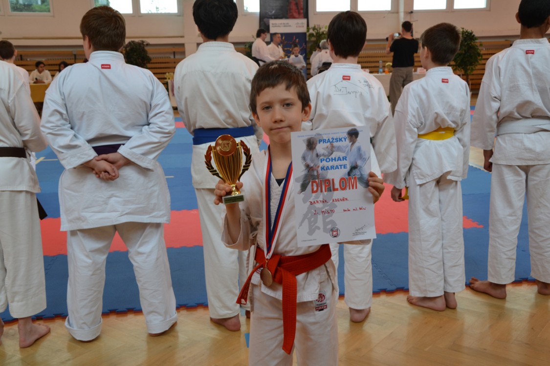 Tuto sobotu, 5.dubna 2014, se naši členové zúčasnili Pražského poháru karate a řada z nich vybojovala medailové ocenění. Pro všechny závodníky byly připraveny účastnické poháry a diplomy. Foto z akce